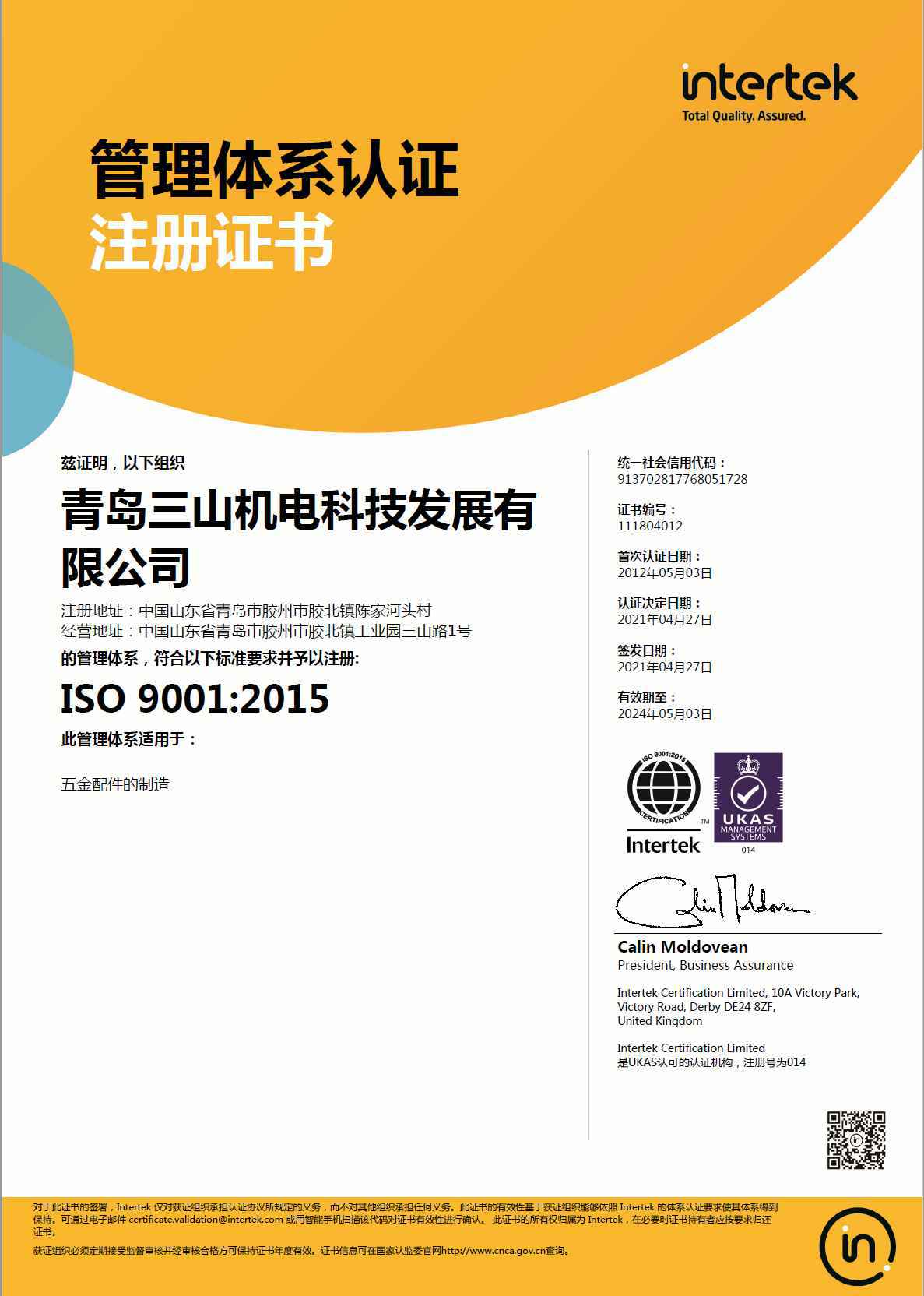公司深知质量永恒定律,坚持质量是研发制造产品永恒的追求,是公司生存发展的根基,更是产品顺利进入国际市场的需要。在青岛公司创业初期2004年始,公司生产的一系列产品通过了BSCI, SEDEX,ISO9001:2015版质量管理体系和知识产权管理体系,实现国家安全及风险管控双体系认证模式。